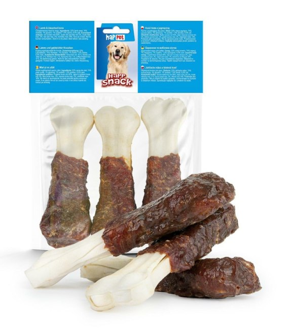 Biała, prasowanakość ze skóry wołowej owinięta mięsem jagnięcym.