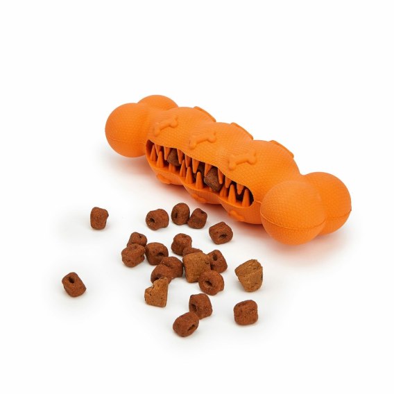 Wypełnij otwory suchą karmą lub przysmakami, a następnie podaj zabawkę psu. Podczas gryzienia i żucia smaczki będą stopniowo uwalniane, co zapewni długotrwałe zaangażowanie.