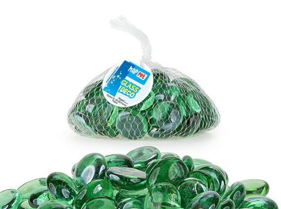 Zielone szklane krążki do akwarium – dekoracja akwariowa bezpieczna dla ryb i roślin. Mogą zastąpić podłoże w małym akwarium lub stanowić ozdobny dodatek.