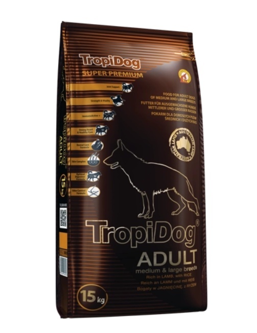 TropiDog Super Premium Adult Medium & Large Breed Jagnięcina z Ryżem – 15 kg