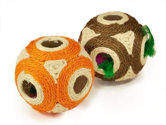 Piłka z sizalu z ukrytą piłeczką – zabawka dla kota
